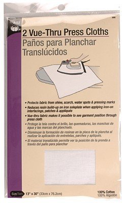 Protects fabric from shine, scorch, water spots and pressing marks. Reduces resin build-up on iron soleplate when applying iron-on interfacings, patches and appliques. Vue-thru fabric makes it possible to see garment position through press cloth. Set of two per pack.