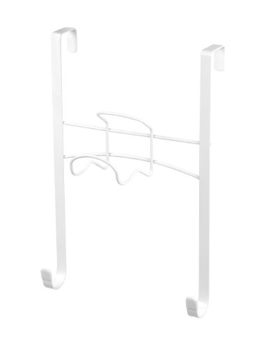 Organize your ironing accessories and save valuable storage space in your laundry room or utility closet with the Over the Door Iron and Ironing Board Storage Rack. This versatile laundry room organizer fits on doors up to 1 5/8-inch thick and provides convenient storage for an iron and collapsed ironing board. Ironing Board and Iron Holder Features Durable steel construction with a white vinyl coated finish. Generous round storage hooks support a T-leg or Y-leg style ironing board. Contoured wire iron holder supports iron by the handle allowing you to hang your iron while it's still hot so it can easily cool. Storage caddy also has additional wire loop for neatly containing iron cord. Ideal for keeping your ironing necessities stored conveniently together and saving precious storage space in a laundry room bedroom or utility closet. Spectrum is a company that does the small stuff great. Their items are made of better plastics, heavier steel, thicker powder coating, and stronger castings. Spectrum inspects every piece before it leaves their factory, so you know you'll always get top quality products. Size 15-inch H by 10-inch W by 6-1/2-inch D, White