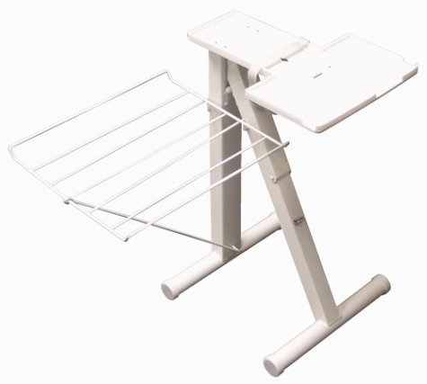 - Made from durable powder-coated steel; storage shelf for finished ironing