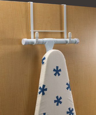 Our Overdoor Ironing Board Holder discretely keeps your ironing board out of the way when not in use. Made from electrostaticly painted heavy-gauge steel, this design will accommodate both cross-leg and T-bar style ironing boards.