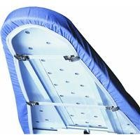 Elastic straps with clamps to hold ironing cover firmly in place.