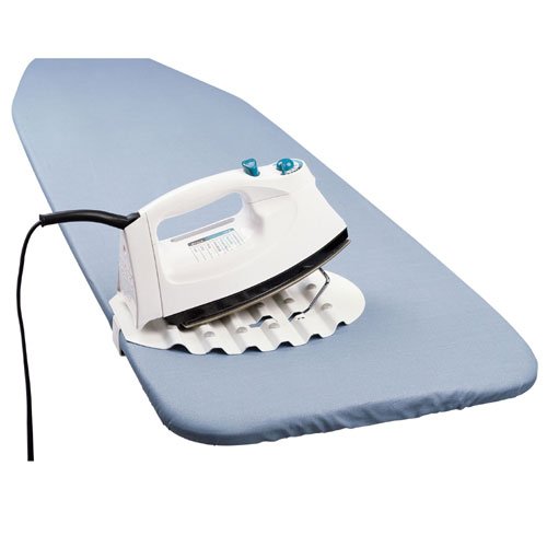 This Polder Trivet Iron Rest is a great addition to any ironing board. The large steel surface fits all irons! It attaches to your ironing board and has an adjustabel stand arm. It is a wonderful way to rest your iron while you are ironing your clothes.